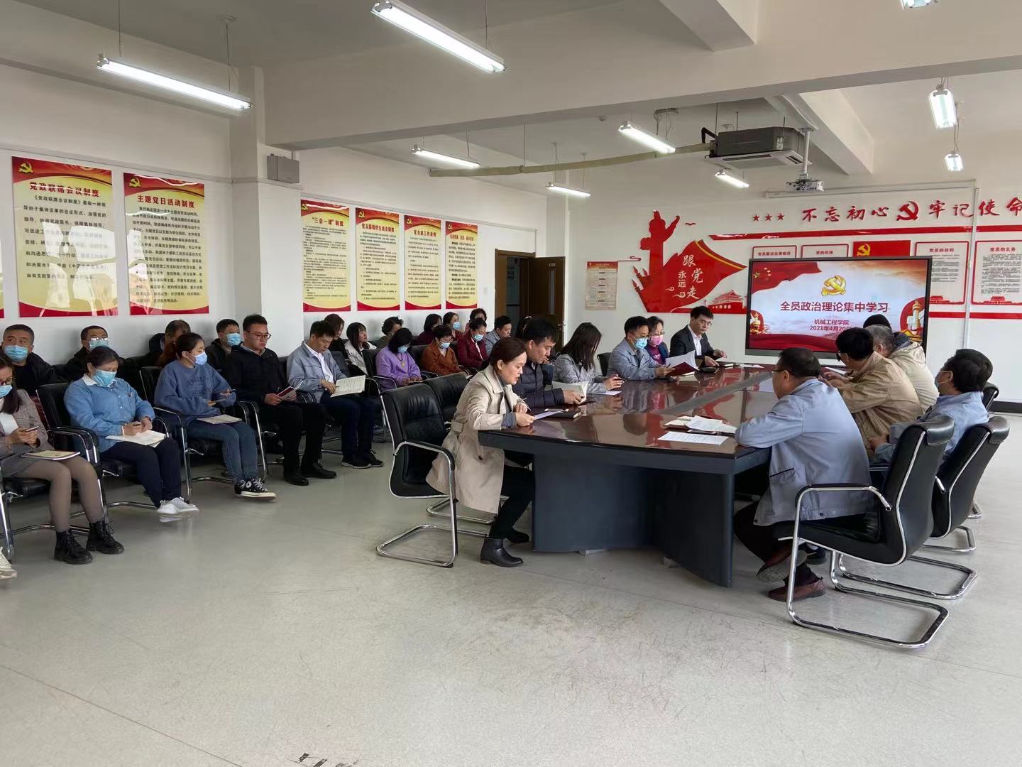 4月20日下午,机械工程学院全体教职工在学院511会议室开展“关于习近平对职业教育工作重要指示和全国职业教育大会精神”的学习活动。本次学习由院长颜丹丹和副院长张洋两位同志领学。