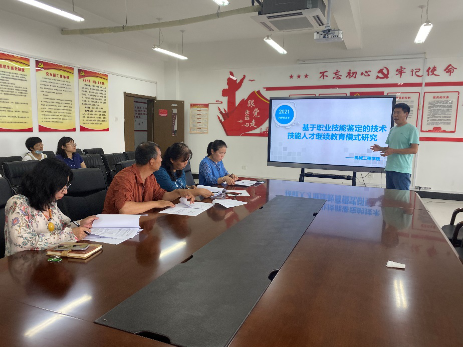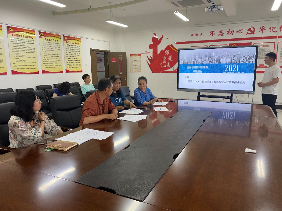 首先,潘远安汇报了中华职教社课题《基于职业技能鉴定的技术技能人才继续教育模式研究》的相关情况,高文嫱、肖冰依次汇报了吉林省高教学会课题《校企协同开发和转化科研成果路径研究》、《基于“1+X”证书制度下数维专业人才培养模式研究》的相关情况。评委们依次对开题报告进行了点评论证,帮助课题主持人理清研究思路、明确研究目的、丰富研究内容、细化研究步骤,使研究更具操作性和可行性。