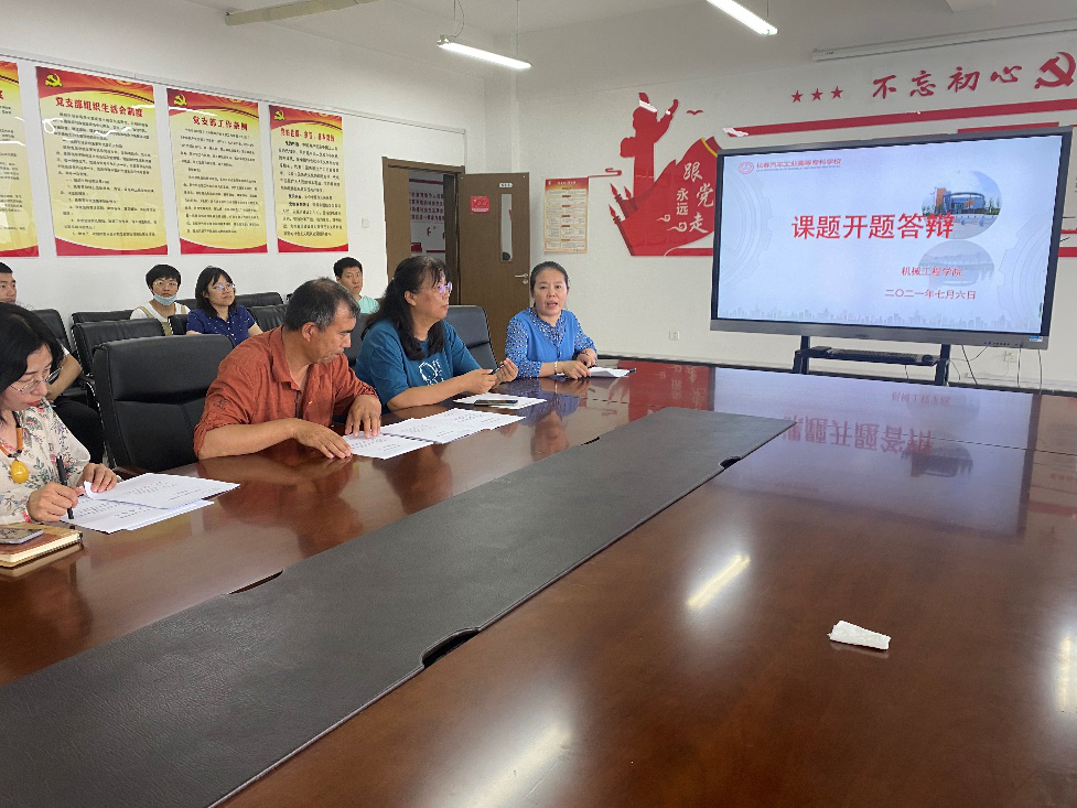 为加强学院对课题的针对性指导,落实职业教育的重要理论创新,为课题研究开好头、把好关,7月6日,机械工程学院在511会议室组织开展了中华职教社、吉林省高教学会课题开题论证会议。质量控制处夏晓峰处长,机械工程学院战淑红教授、陈艳辉教授、李绍红教授、马元国教授受邀作为专家评委出席了本次会议。会议由战淑红教授主持,青年教师潘远安、高文嫱、肖冰作为课题主持人分别进行开题汇报。