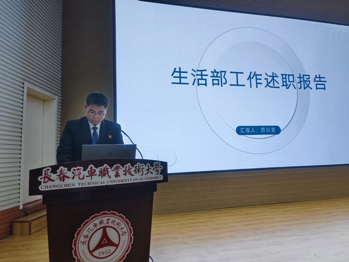 会议伊始,各部门学生干部代表依次上台述职,在分享中,他们总结经验、反思不足,提出诸多创新想法。