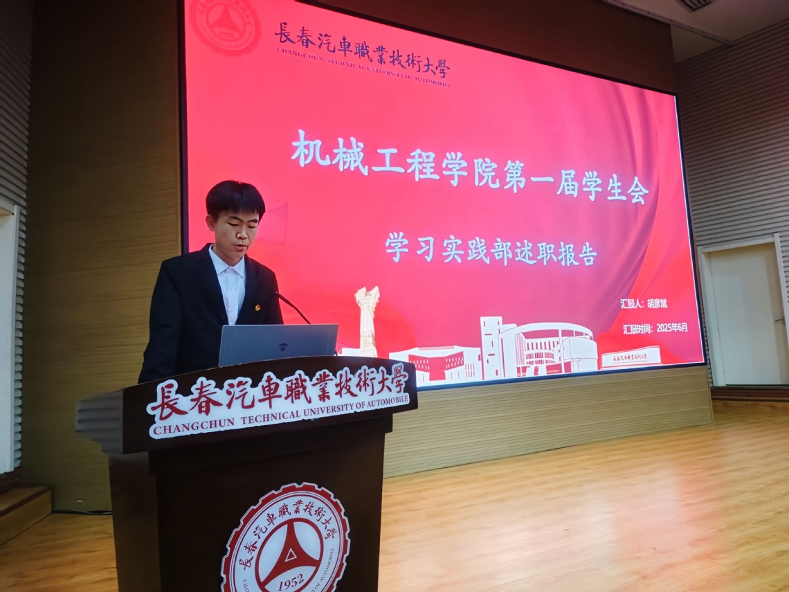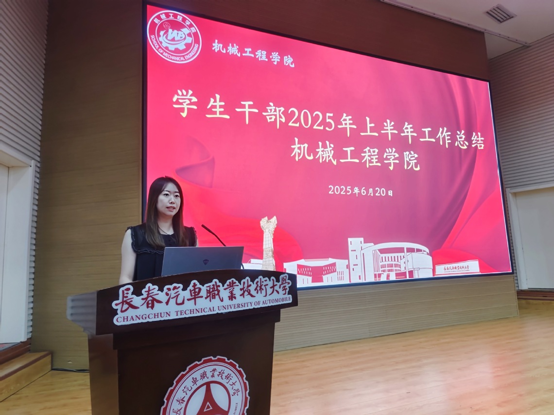 机械工程学院 2025 年上半年学生干部总结大会在学校图书馆报告厅召开。学院团总支负责人付雯琳、辅导员马阳参加会议,全体学生干部齐聚一堂,共同回顾上半年工作,展望未来发展。