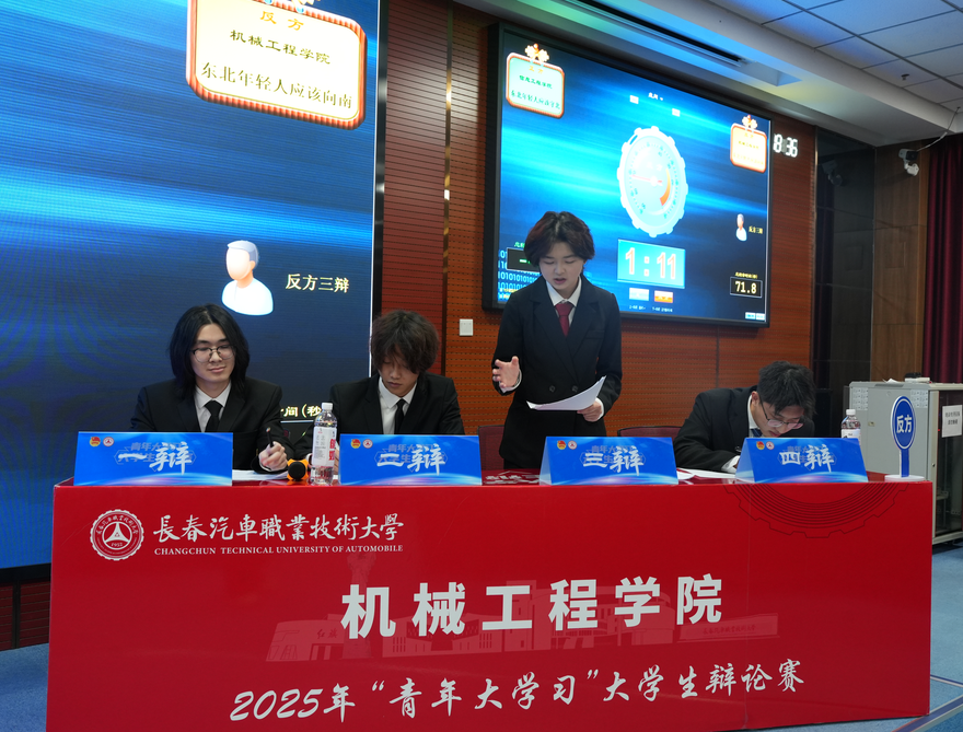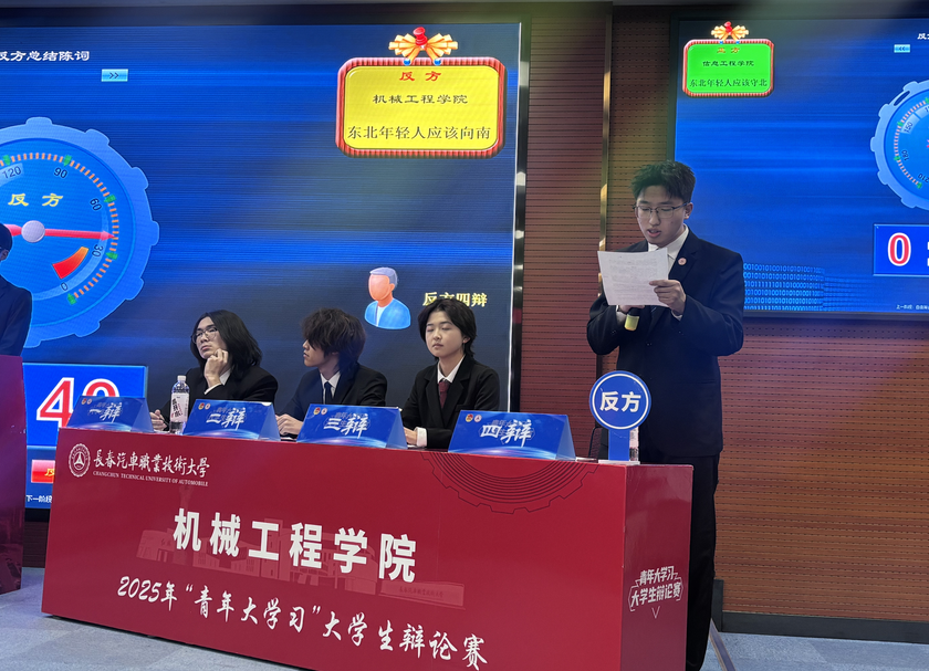 决赛现场交锋激烈,氛围紧凑热烈。正方立足东北资源禀赋与家乡建设需求,阐述留乡发展的价值意义。机械工程学院辩论队作为反方,紧扣时代发展趋势与个人成长需求,多维构建论证体系,清晰阐释观点内核。立论环节,辩手们开篇明义,从产业布局来看,南方制造业、高端装备产业集群成熟,与机械工程专业适配度高,能为年轻人提供更广阔的职业实践与晋升平台;从发展环境而言,南方创新氛围浓厚、技术迭代迅速,有利于接触行业前沿理念,助力专业能力进阶突破;同时明确向南发展并非脱离家乡,而是以个人成长积累技术与经验,未来可携资源反哺家乡产业升级,实现个人价值与区域发展的双向共赢。