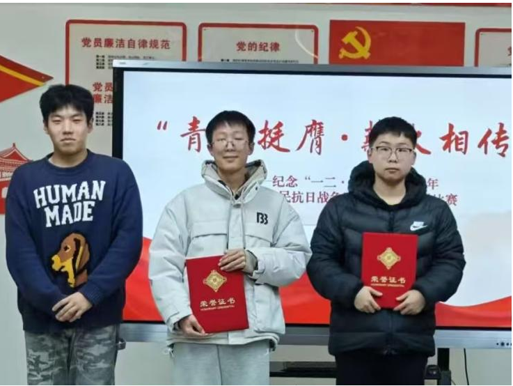 经过激烈角逐,翁赫同学凭借出色表现斩获一等奖,他的演讲逻辑清晰、情感饱满,串联历史记忆与时代使命,既深刻诠释红色精神内涵,又彰显新时代青年“强国有我”的坚定信念,感染力十足,尽显青春风采。李子健、杨辰杰同学荣获二等奖。李子健以细腻笔触追溯历史脉络,将爱国情怀融入朴实言辞,叙事真挚动人,引发全场情感共鸣;杨辰杰语调激昂、气势昂扬,聚焦青年担当,讲述新时代学子逐梦奋进的成长故事,展现出蓬勃向上的青春朝气。孙溢佑、左佳瑞同学获评三等奖。二人紧扣主题深耕内容,分别从自身视角解读爱国精神,内容扎实、表达流畅,传递出铭记历史、勤学笃行、传承红色薪火的坚定决心,展现出良好的综合素养与精神风貌。